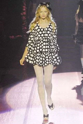 The 90’s fashion differentiated from the previous era. While 80’s fashion focused on neon colors and a sense of creativity, the 90’s had creativity with a different meaning. Betsey embraced the grunge look with baby doll dresses. She infused urban fashion into her collection. While the designs differed, she managed to stay with her style using her usual patterns of floral and polka dots.