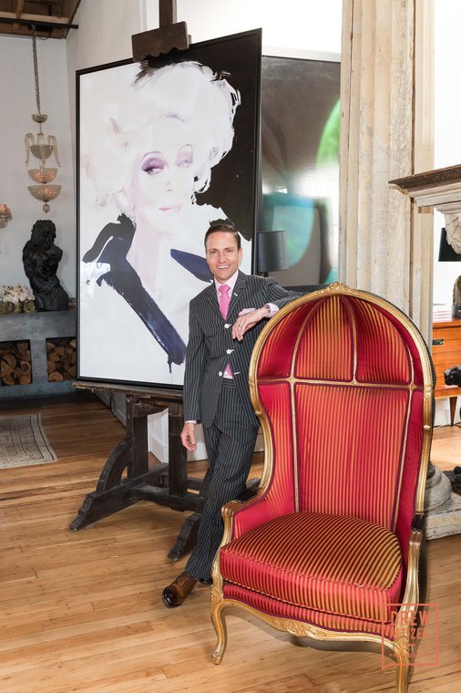David Downton signing his illustration of Carmen Dell'orefice. Photo: Drew Altizer.