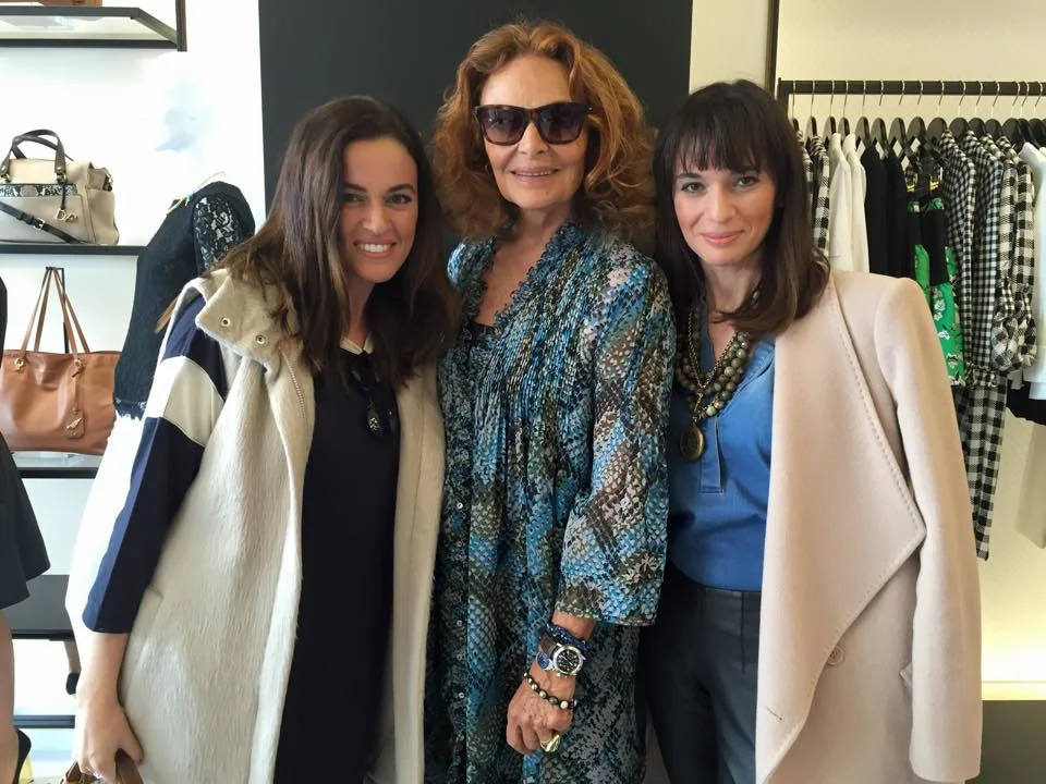 Founder of SHOPGIRLSF Juliet Belkin and Editor-In-Chief Rena Leinov with DVF at the Grove store in Los Angeles.