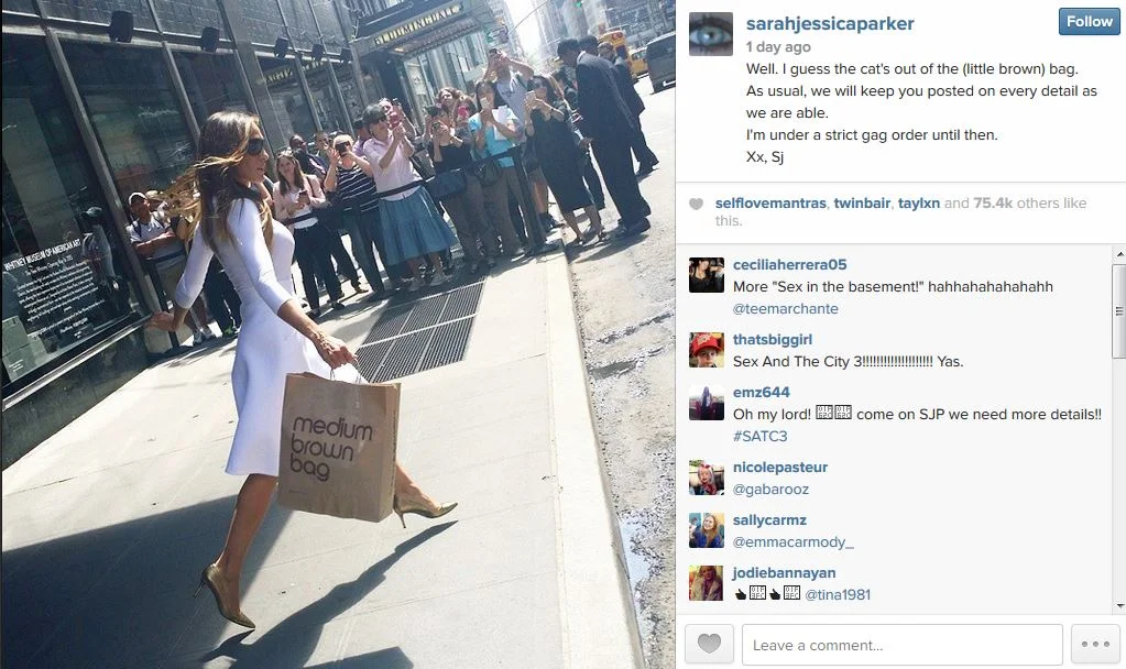 Sarah Jessica Parker made everyone curious after posting a photo of her filming in NYC wearing heels and carrying a little brown bag.
