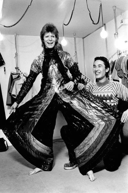 “David Bowie first saw my designs at a show in London in 1971, and decided to wear them on stage. This picture was taken in my studio in Tokyo in April 1973, when his Ziggy Stardust tour came to Japan. By then we’d become friends, after meeting at his first American dates two months earlier.”