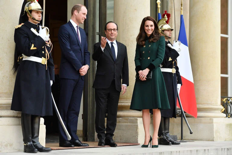 Getty. William, Hollande and Middleton at the Elysee Palace.