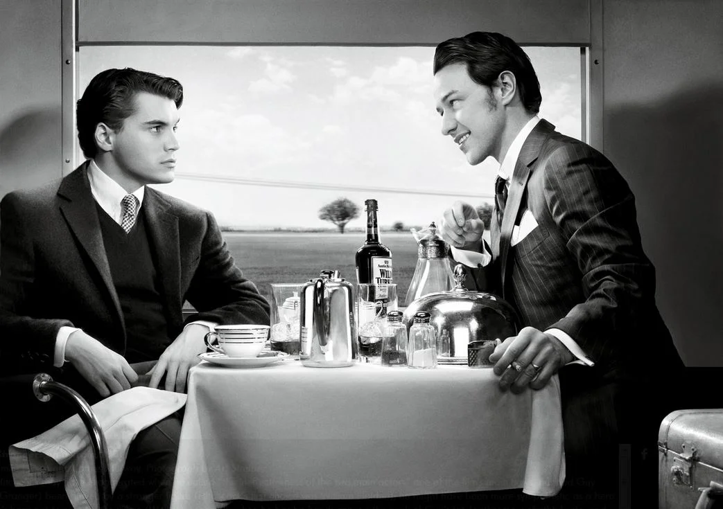 Strangers on a Train, 1951 Emile Hirsch and James McAvoy. Photograph by Art Streiber.