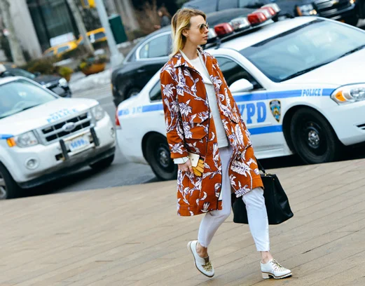 Instead of opting for your basic black trench, try a bolder color or even a print. Make sure to keep the rest of your ensemble simple for the most sophisticated results.
