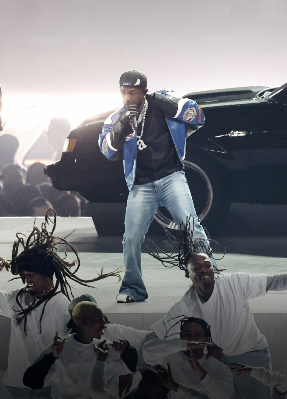 KENDRICK LAMAR's halftime performance showcased not only his musical prowess but also a carefully curated visual aesthetic. He donned a striking ensemble that blended streetwear with high fashion.