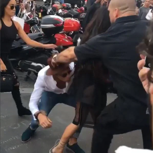 In a video posted to Instagram by makeup artist Mario Dedivanovic, it appears that Vitalii was olanted a kiss on Kim's famous bum after she stepped out of her vehicle outside of L'Avenue restaurant on Wednesday. Sediuk was taken down by Kim's bodyguard and Kim walked safely inside.