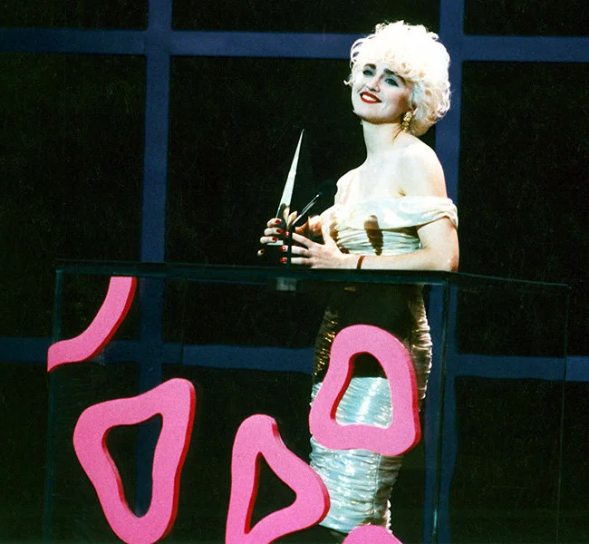 A very blonde Madonna onstage at the 1987 American Music Awards.