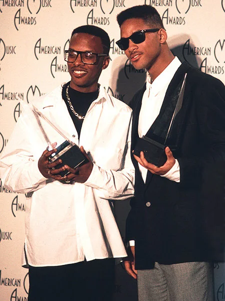 DJ Jazzy Jeff & The Fresh Prince (Will Smith) each hold an award at the 1989 AMAs.