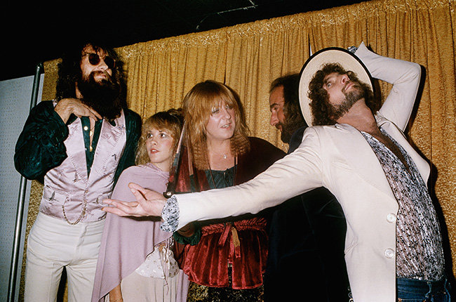 Fleetwood Mac vamps for the camera backstage at the 1978 American Music Awards.